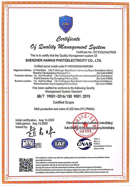 Во время производства светодиодных линз мы внедряем систему тройной проверки.мы проведем предварительную проверку внешнего вида, чтобы убедиться, что линза не имеет очевидных дефектов и деформацийВо-вторых, после завершения сборки,мы проведем всестороннее функциональное тестирование, чтобы убедиться, что оптические характеристики и теплораспределение объектива соответствуют требованиям конструкцииНаконец, прежде чем продукт сойдет с производственной линии,Мы также проведем 100% проверку и проведение всеобъемлющей проверки каждого объектива, чтобы убедиться, что его качество и производительность соответствуют нашим стандартам.